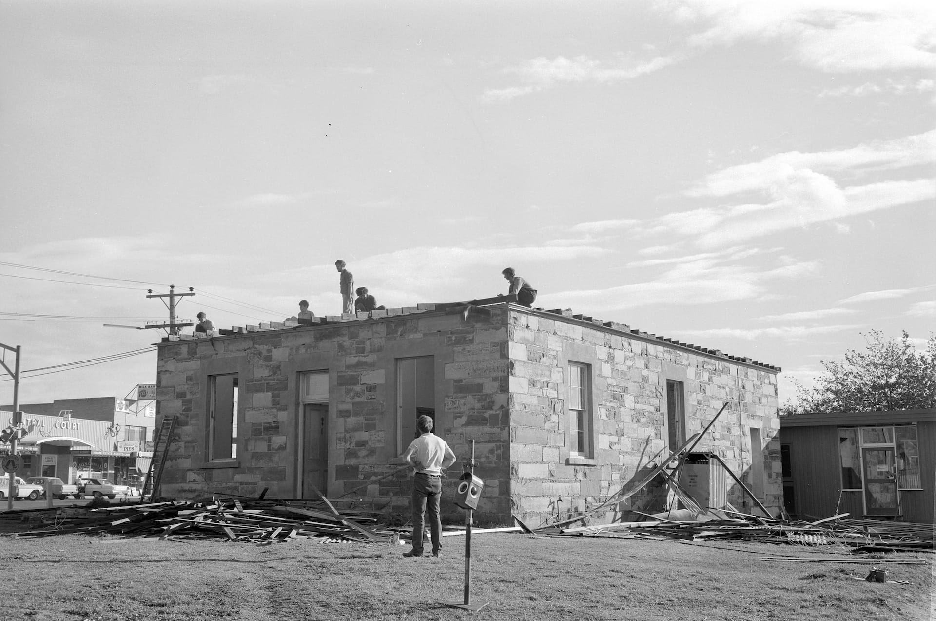 Then in 1971 they began the mammoth task of pulling the cottage apart stone by stone. It was dismantled under the careful supervision of the Doncaster Templestowe Historical Society and a local stonemason. Each stone was numbered and taken to the new site and laid out in order. Slowly the cottage was re-built. It gained a new iron roof and new timber ceilings — but, apart from these, it was erected exactly as it had been by Pastor Schramm in 1875.