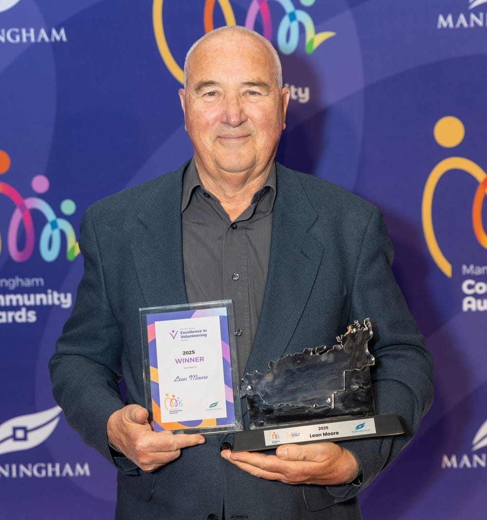 Leon Moore 荣获 2025 Manningham Citizen of the Year,并凭借创立并带领 Laughing All Abilities Really Friendly Singers (LAARFS),同时获得 Doreen Stoves Volunteer of the Year Award。该合唱团每周聚集 70 余位身患帕金森病、多发性硬化症、癌症及痴呆等慢性疾病的成员,为他们带来欢乐、陪伴与社区归属感