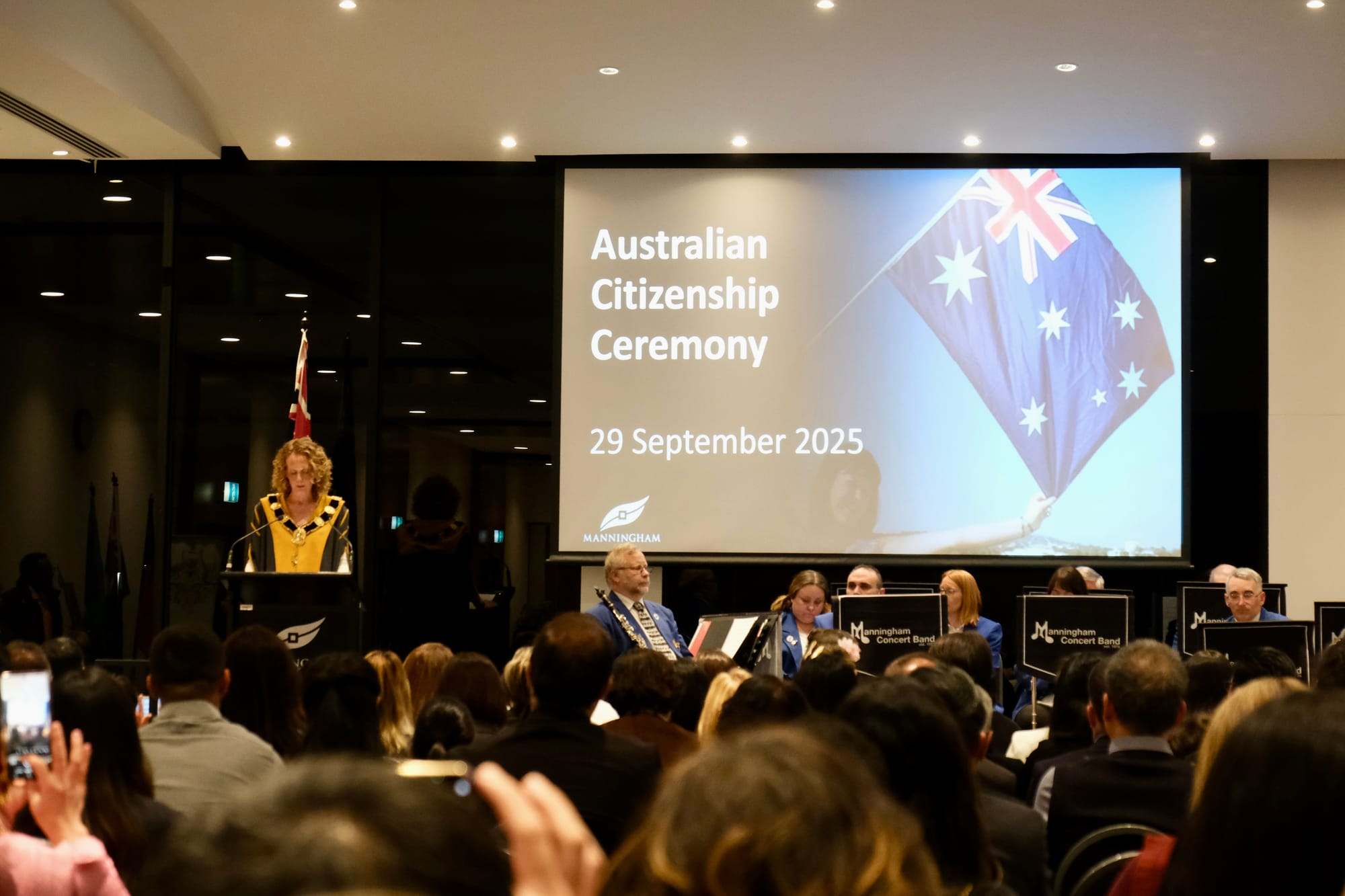 当晚的仪式由市长 Deirdre Diamante 主持,Gabriel Ng MP(联邦众议员,Menzies 选区)、Nicole Werner MP(维州议员,Warrandyte 选区)以及联邦部长的视频致意一同出席。他们向 Manningham 的新公民表达了热烈的祝贺与欢迎。