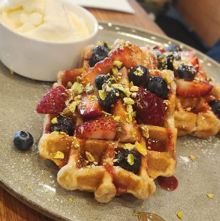 For those who love hot fried chicken, prospects are rather juicy. The Hot & Spicy Chicken Waffles and the Crispy Chicken Poke Bowl deliver tender chicken thighs encased in sweet, spicy, and crunchy exteriors. Speaking of poke bowls, the Smoked Salmon Poke Bowl is the ultimate in comfort food, with its generous toppings and well-balanced flavours of mayonnaise and goma dressing. Sweet tooths are not overlooked. The brioche-style waffles or pancakes served with berry coulis, pistachio crumble, maple syrup, and ice cream hit the intended mark. Meanwhile, the French Cube with ice cream is calling: individual French toast squares drizzled with syrup and topped with berries – yum!
