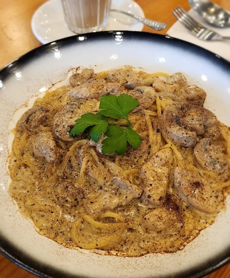 The story of Salted Caramel Café began as a post-Covid pivot for this former maths-tutoring couple. Ken’s healthy disdain for the digital universe saw him resisting the gravitational surge in online interactions. Eventually, he and Olive decided to trade polynomials for poke bowls and pasta. They took over the existing business and augmented the menu with a dash of Asian classics. Today, one can expect anything that exits the kitchen or drink station to be treated with the same mathematical precision required of their former discipline.