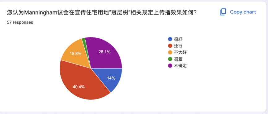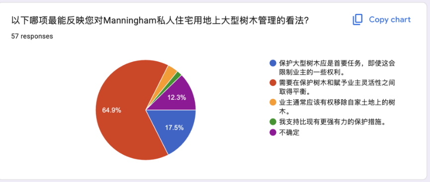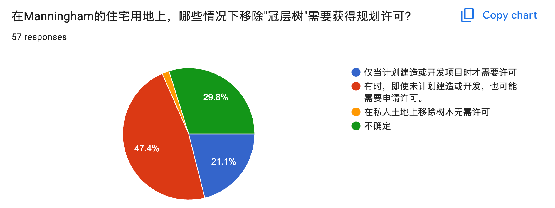 This canopy tree survey was designed to assess the level of understanding among Chinese residents in Manningham regarding recent changes to canopy tree regulations.
