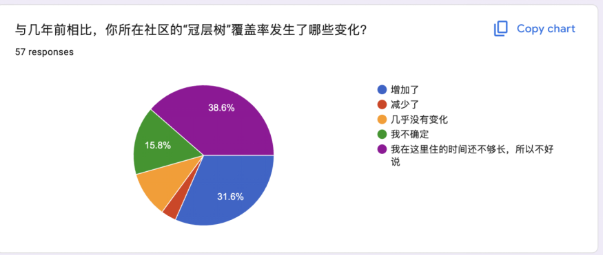 While around half believe there has been a decline, 31.6% of respondents said tree canopy has increased, and about 15% were unsure.