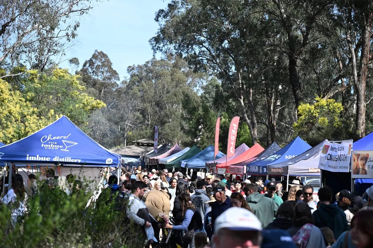 Nearly 180 stalls lined the riverside reserve, offering fresh fruit and vegetables, handmade jewellery, flowers, plants, baked goods and homewares. Food vendors selling coffee, artisanal bread and popular hot dishes drew long queues, with families gathering at shaded areas to eat while listening to live music.